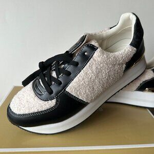 NIB Michael Kors Monique Trainer Faux Shearling Lace Up Sneakers Size 8 RARE