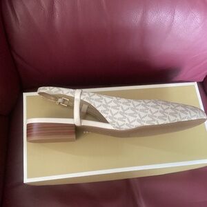 Faux leather upper, and lining, and a lightly padded footbed, the shoes come equipped with a buckled closure on the slingback heel strap for a custom fit.