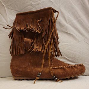 NIB Minnetonka decorah double fringe moccasin boots size 6.5