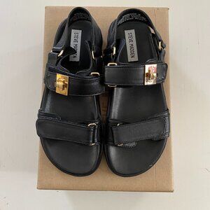 NIB NEW Steve Madden Mona Black Leather Turnlock hardware Dad Sandal Women's 7