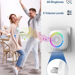 【60 Melodies, 5 Volume Levels & Memory Function】This door bell ringer wireless offers 60 selectable melodies, 5 adjustable volume levels ranging from 0dB to 100dB. It has a memory function that retains your last chosen melody and volume setting, even during a power outage.