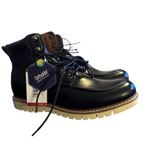 Taking inspiration from both traditional workwear and military boots, this moc toe boot has 5.5-inch height and a laced closure at the front that offer plenty of padded ankle support to keep your steps secure. The lightweight synthetic leather construction gives you a sneaker-like feel for easy movement. Metal speed hooks make it easy to take them on and off, so you'll always be ready to get up and go.