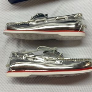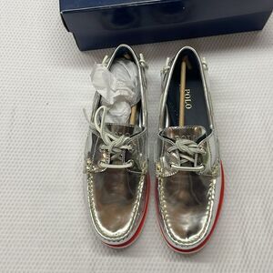 NIB NWT Polo Ralph Lauren Merton Silver Boat Shoes Size 8