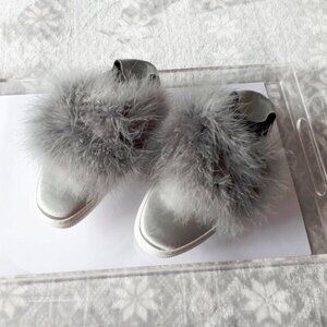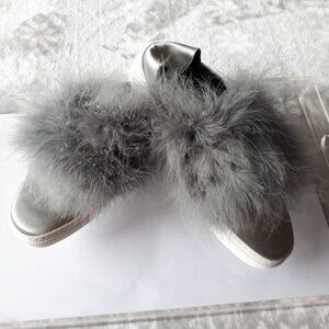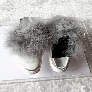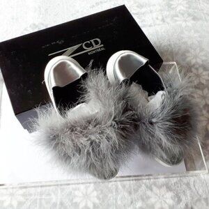 NIB NWT ZCD Montreal silver grey satin and feather sneakers