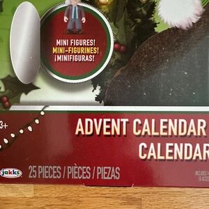 NIB National Lampoons Christmas Vacation Advent Calendar. 24-day advent calendar featuring collectible surprises from the movie National Lampoon's Christmas Vacation. It includes 1-inch stylized posed figures and accessories to build the world of Clark and his Christmas Vacation. Characters and elements like Clark and his family, Eddie's RV, Aunt Bethany and Jelly of the Month are included. The calendar also includes pop-up environment pieces to recreate favorite scenes from the movie. The box lid is the scene that has the 24 windows to hide the figures. Pics 14-16 show the lid's seal (pic 14) and the edge has been separated so you can see the scene (pics 15-16.) It has never been used and all 24 pieces are present. New in box.