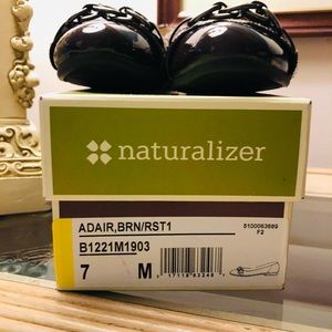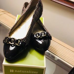 Perfect condition, herringbone Red, Black and Tan with gold buckle accent and shiny patent leather toe...a cute little shoe with a lot of style!