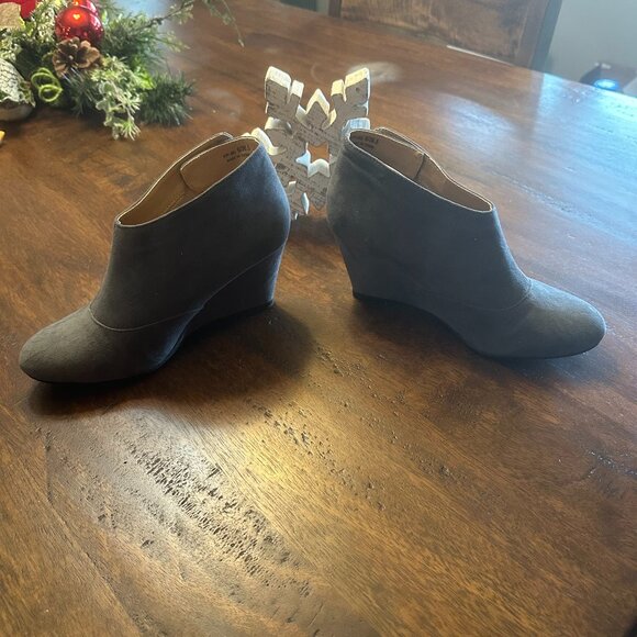Elevate your style with these chic Naughty Monkey booties! These size 6 wedge booties feature a sleek design perfect for any occasion. The subtle color and comfortable fit make them a versatile addition to your wardrobe. Great for dressing up or adding a touch of elegance to your everyday look.