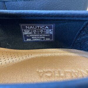 NEW-IN-BOX stylish and comfortable "Sommerland" black loafers by Nautica in women's size 9 are perfect for walking, work, travel, or everyday wear! Features include a sleek slip-on design - easy-on, easy-off slip-on silhouette with a classic moc toe for effortless everyday wear. Bold Chain Accent – a modern chain detail across the vamp adds standout appeal to these versatile flats. A timeless loafer with just the right amount of edge. Soft vegan suede leather upper – smooth with a refined texture that offers durability and a polished finish. Cushioned footbed offers superior underfoot support and shock absorption for long walks, commutes, or everyday wear. Comfort-focused construction – lightweight sole and cushioned footbed provide support for walking, commuting, or long days on your feet. Flexible build ensures natural movement and lasting comfort. Durable TPR rubber outsole, round toe, spot clean. Perfect choice for women seeking fashionable shoes that feel as good as they look. A terrific look for work, comfortable enough for errands, casual outfits, or travel days. New, smoke-free. Bundle and save - feel free to view my Closet. Thank you!