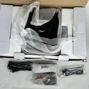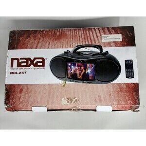 The NIB Naxa 7" Bluetooth DVD Player/Boombox Combo features a sleek black design with a 7-inch TFT/LED display, making it perfect for on-the-go entertainment. This custom bundle includes a DVD player and boombox speakers, providing versatile functionality in one compact unit. With its USB connectivity, 32GB storage capacity, and region code 1 DVD compatibility, this Naxa model (NDL-256) is a convenient and reliable choice for enjoying your favorite movies and music with friends and family.