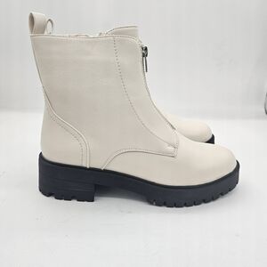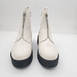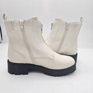 NIB New York & Company Allie Womens White Block Heel Lug Sole Zip Up Boot 10