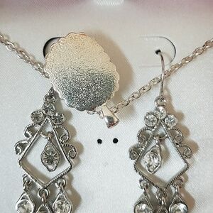Nine West Silvertone Necklace and dangle earrings in box. See all pictures for actual condition. Feel free to ask questions.