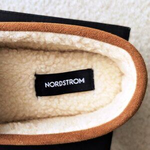 NIB Nordstrom MICAH Suede Moccasin Slippers in Chestnut, Menโs Size 9-10