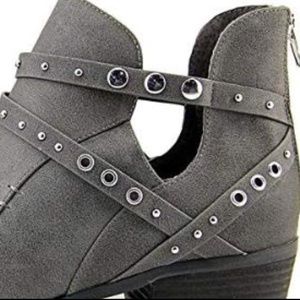 NIB Not Rated Takayama Gray Grommet Embellished Crisscross Flat Bootie, Size 6.5