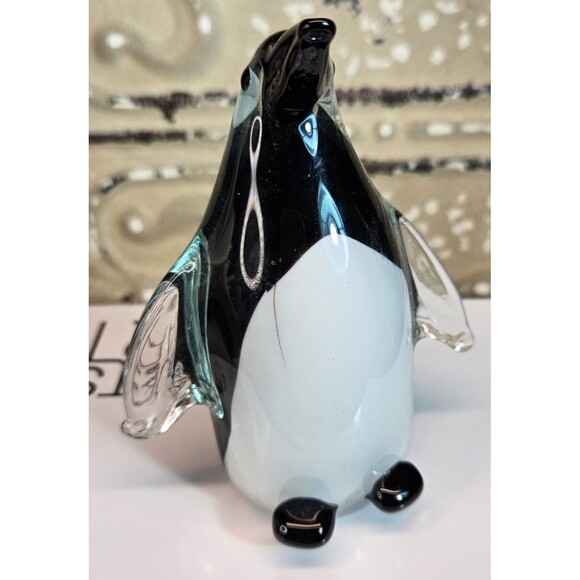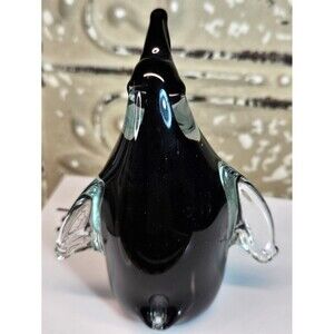 NIB Objets D'Art Solid Hand Blown Colored Glass Penguin Figurine 5"
