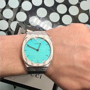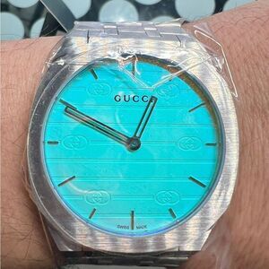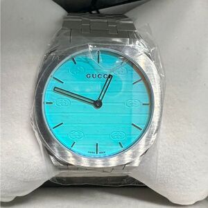CASE DIAL: Ocean Blue Glass Dial with GG Hour Markers and Blue Hands