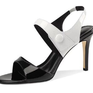 NIB. Open Toe, Slingback PU Leather, Black & White Color Blocked Heels. Size 8.5