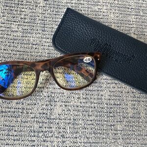 NIB Optimum Blue Light Glasses +2.50 beautiful Tortuous Shell Rim. New In Box.