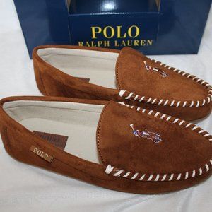 NIB POLO RALPH LAUREN MEN'S SUEDE PONY EMBROIDERED SLIPPERS