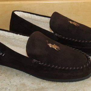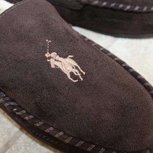 NIB POLO RALPH LAUREN MENS SUEDE SLIPPERS BROWN
