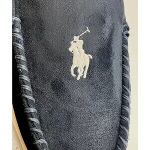 NIB POLO RALPH LAUREN Men's Sz 9 Moccasin Slippers Declan White Pony Blue Suede