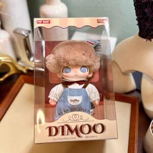 Adorable DIMOO vinyl plush in a charming outfit. Features a cute hat and blue overalls. Perfect for collectors.