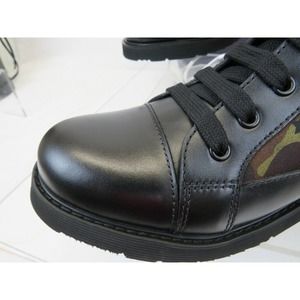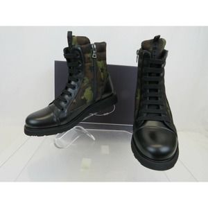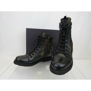 NIB 0T0782 CAMOUFLAGE GREEN LEATHER CAP TOE LACE UP LOGO COMBAT BOOTS