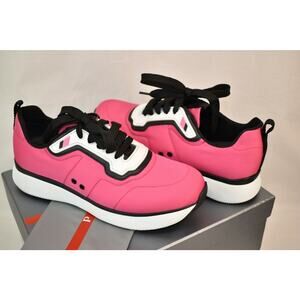 NIB PRADA 3E6321 WOMEN PINK NYLON LACE UP LOGO LOW TOP PLATFORM SNEAKERS 40
