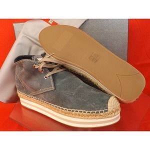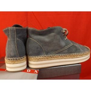 NIB PRADA BLUE SUEDE LACE UP LOGO ESPADRILLES CHUKKA BOOTS 39 8.5 $ 525