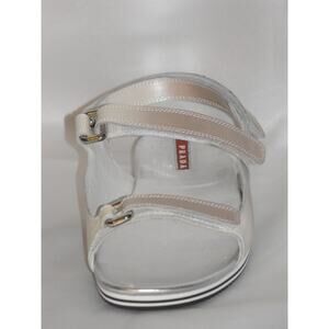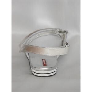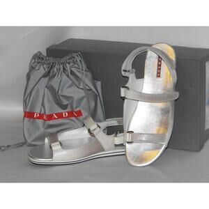 NIB PRADA PATENT OMBRE FUME LEATHER FLATS TWO TONES LOGO SANDALS 36.5
