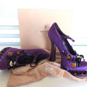 NIB PRADA SATIN MARY JANE PLATFORM PUMPS JEWELED HEEL