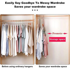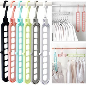 Closet organizers and storage can save more wardrobe space. When used vertically,magic closet storage hangers with premium smart hanger hooks can save more than 80% of the space and keep the clothes neatly separated and wrinkle-free. The storage organizer with 9 square holes design make each piece of clothing ventilated at equal intervals without crowding. Closet space saving hangers can hang at least 9 pieces of clothes,and easily bid farewell to messy wardrobes