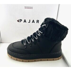 NIB Pajar Chalet Women's US 7.5 Lace Up Winter Boot Waterproof Faux Fur Black