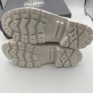 Brand new in box, these Palladium Pallabase Twill combat boots in Star White combine rugged utility with a modern, fashion-forward silhouette. Designed with a durable twill upper and sturdy platform-style rubber sole, they deliver all-day comfort and traction for urban exploration, outdoor adventures, and street style looks.