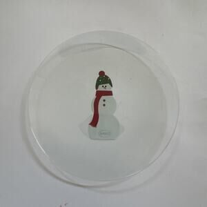 NIB Pampered Chef Set of 4 Glass Snowmen Round Appetizer Plates Christmas