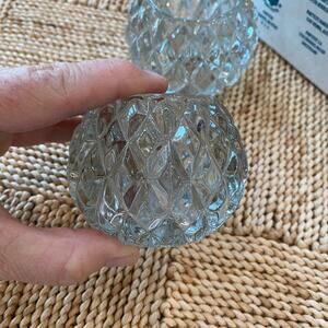 NIB PartyLite Set of 2 Diamond Pattern Clear Glass Votive Candle Holders