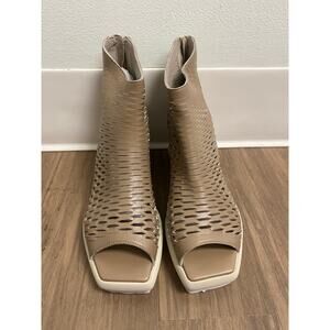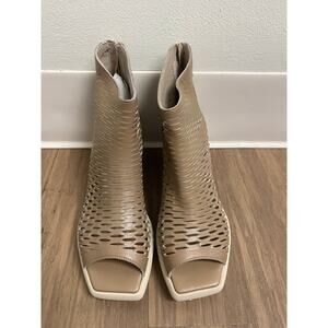 New In Box Patrizia bonfani Sara Sun Pietra Shoes. Laser Cut Leather. Back Zip up, Open Toes. tan color sz 41 Retails for $345