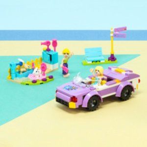 Includes instructions to make one beach car with one bench and light post, one groomer area, one cat, one dog, and two people
