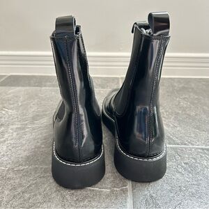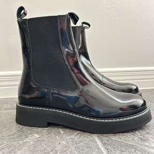NIB Pilcro Contrast Stich Patent Leather Chelsea Boot Black Size 39