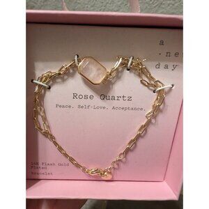 NIB Pink Rose Quartz & Gold Pendant Cable Chain Costume Bracelet