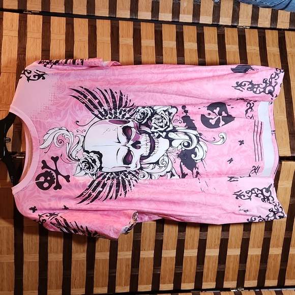 NIB! Pink Skeleton print stretch top