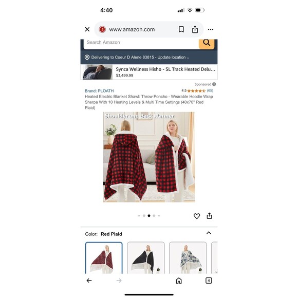 NIB Ploath Electric Blanket Shawl: Throw Poncho - Wearable Hoodie Sherpa plaid