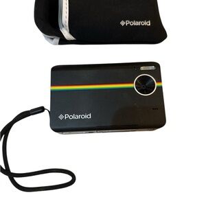 Polaroid Z2300. New in Box. Screen still covered. Comes with carrying case. Capture moments with this Polaroid instant camera. Features a classic rainbow stripe on a sleek black design.