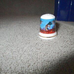 NIB Porcelain KOKOPELLI Set Of 6 THIMBLES Sewing Accessory XL Native FLUTE Dance