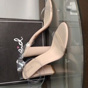 NIB Qupid Clear strap heel size 10, clear straps and ankle strap, nude colored heel
