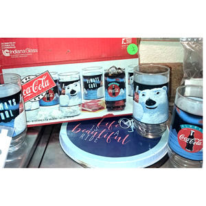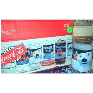 RARE! NEW IN BOX - NEW in BOX RARE & FUN! Set of 8 Polar Bear Coca-Cola Drinking Glasses in Box. Vintage Set of 8 Indiana Glass Coca-Cola Polar Bear 16 oz Tumblers.