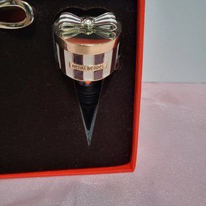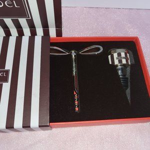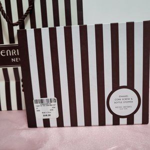 This gorgeous bar set includes a hatbox topped enamel cork screw and a bow topped bottle stopper, both in the classic Henri Bendel brown & white stripes. It is in original box and has never been used and comes with original shopping bag.