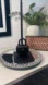 Features An Octagonal Exterior Crafted In A Black Fabric Embellished With Black Crystals There Is A Black Eagle Head On The Front