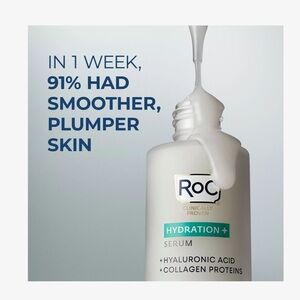 Developed with Dermatologists, this concenrated hydrating serum visibly re-fills lines and wrinkles while reducing 100% of dry skin symptoms. Only RoC Hydration+ Serum uses Dual-Fill Technology to instantly re-fill lines, while actively smoothing overtime for re-volumized, younger-looking skin.