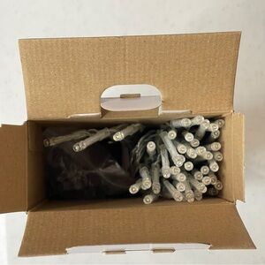 10 Strands with 10 Lights for a total of 100 lights. Brand new in box. Never removed, top of box opened for picture only.