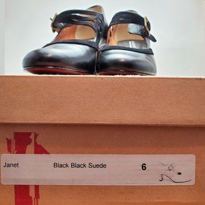 Brand new in box! Black leather Janet shoes by Re-Mix, with black suede trim. Size 6.